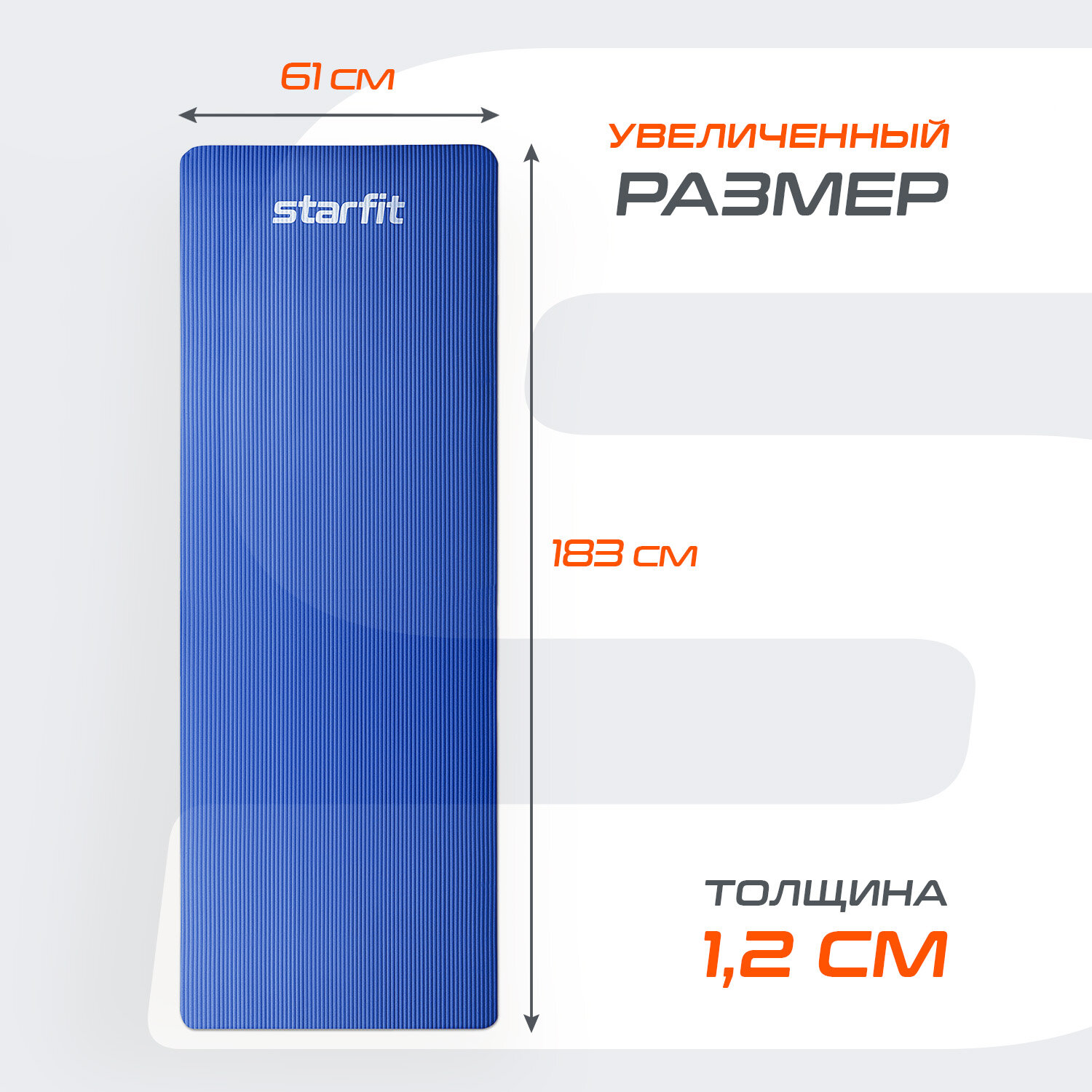 Коврик для йоги и фитнеса STARFIT FM-301 NBR, 1,2 см, 183x58 см, темно-синий информация: