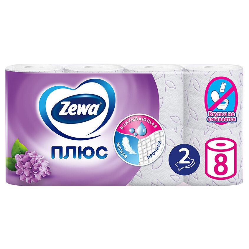 10 цен на Бумага туалетная Zewa Плюс Сирень, 2-х слойная, 8 шт в упаковке, 1 уп