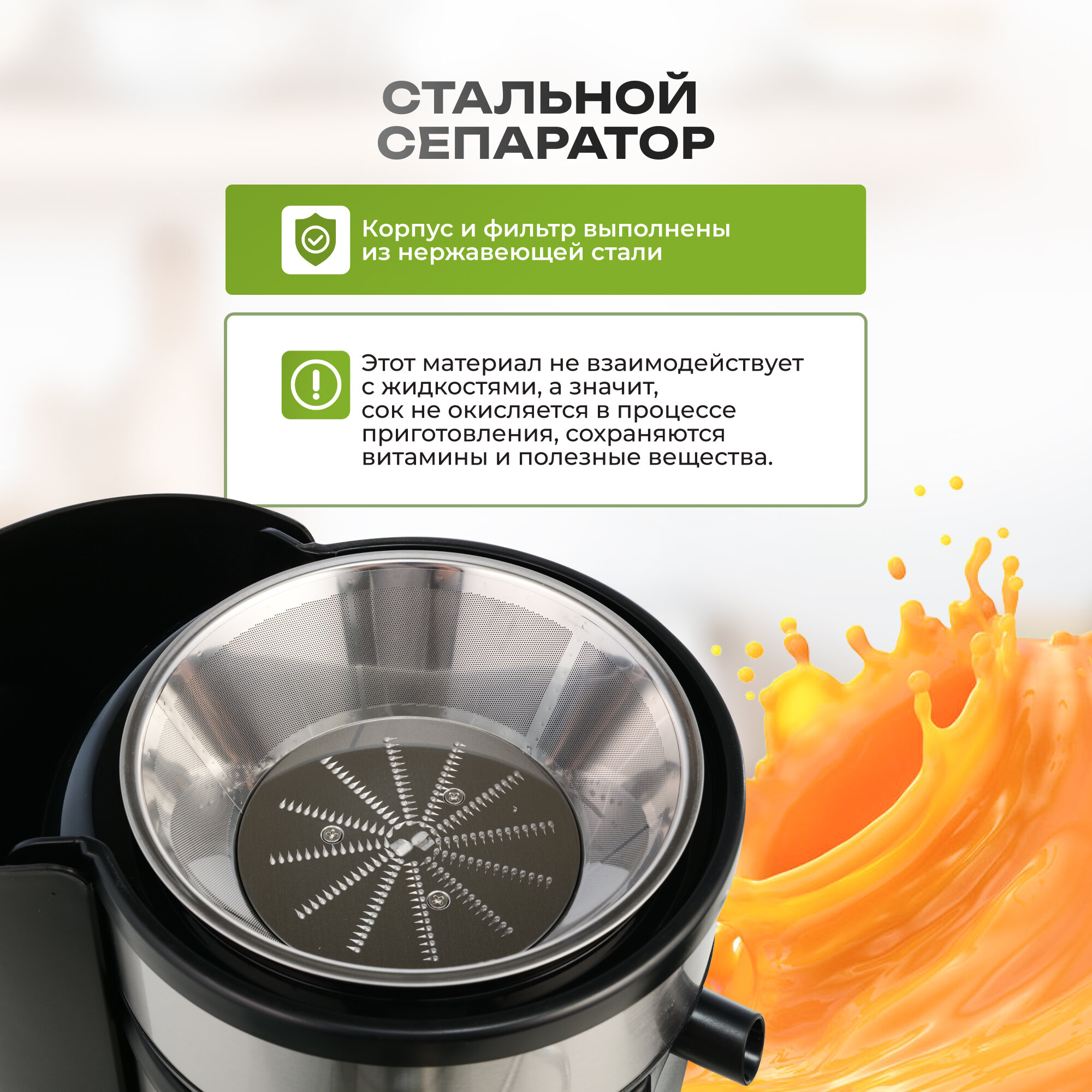 Соковыжималка CENTEK CT-1214 1500 Вт, резерв сока: 1,1л, черный/серебристый