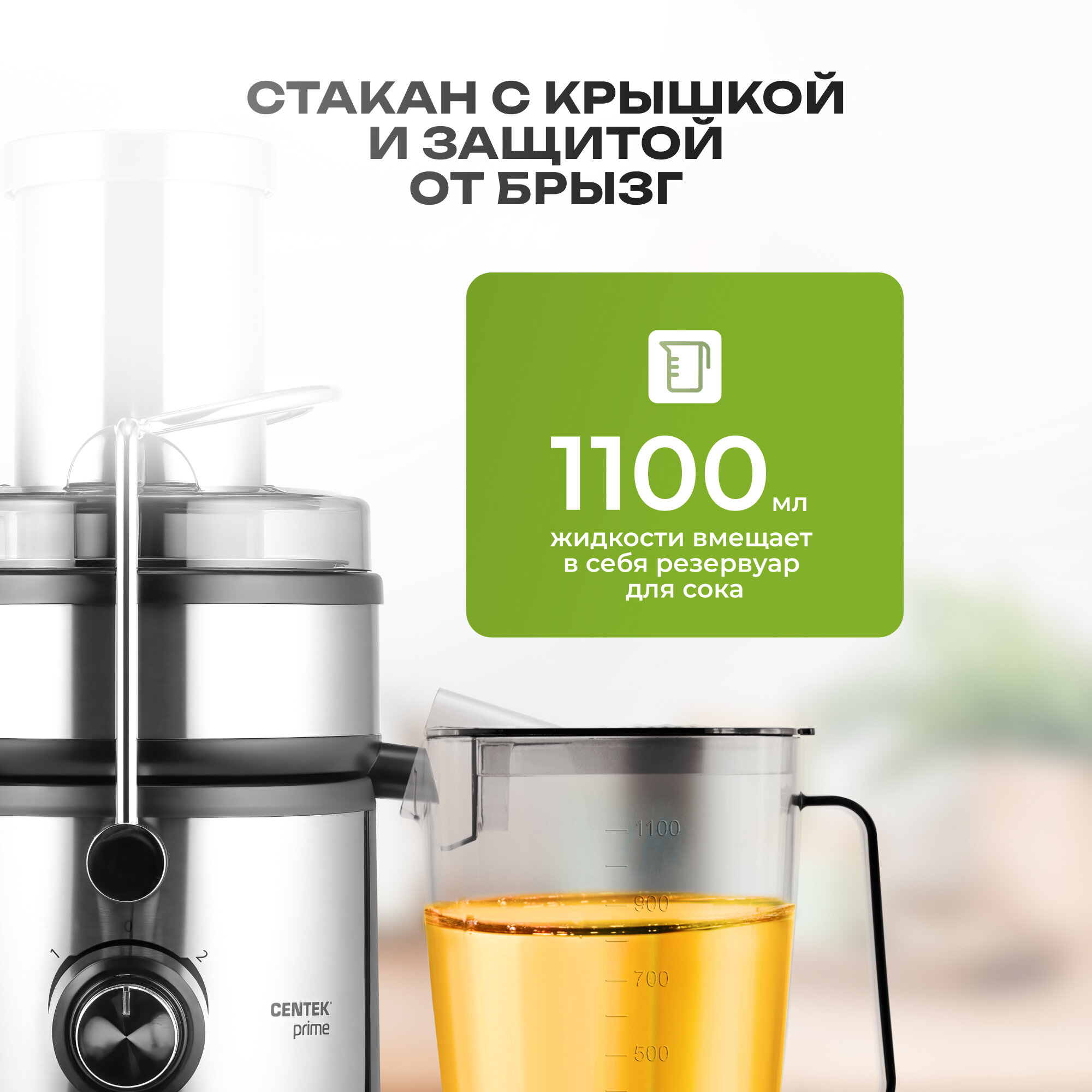 10 цен на Соковыжималка CENTEK CT-1214: 1500Вт/ 2 скорости/ стакан 1100мл/ горловина 85мм