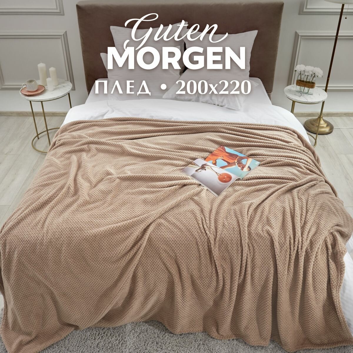 Покрывало (плед), Guten Morgen, Велсофт, Жаккардовый, Моккачино, 200x220 см 2 411 ₽