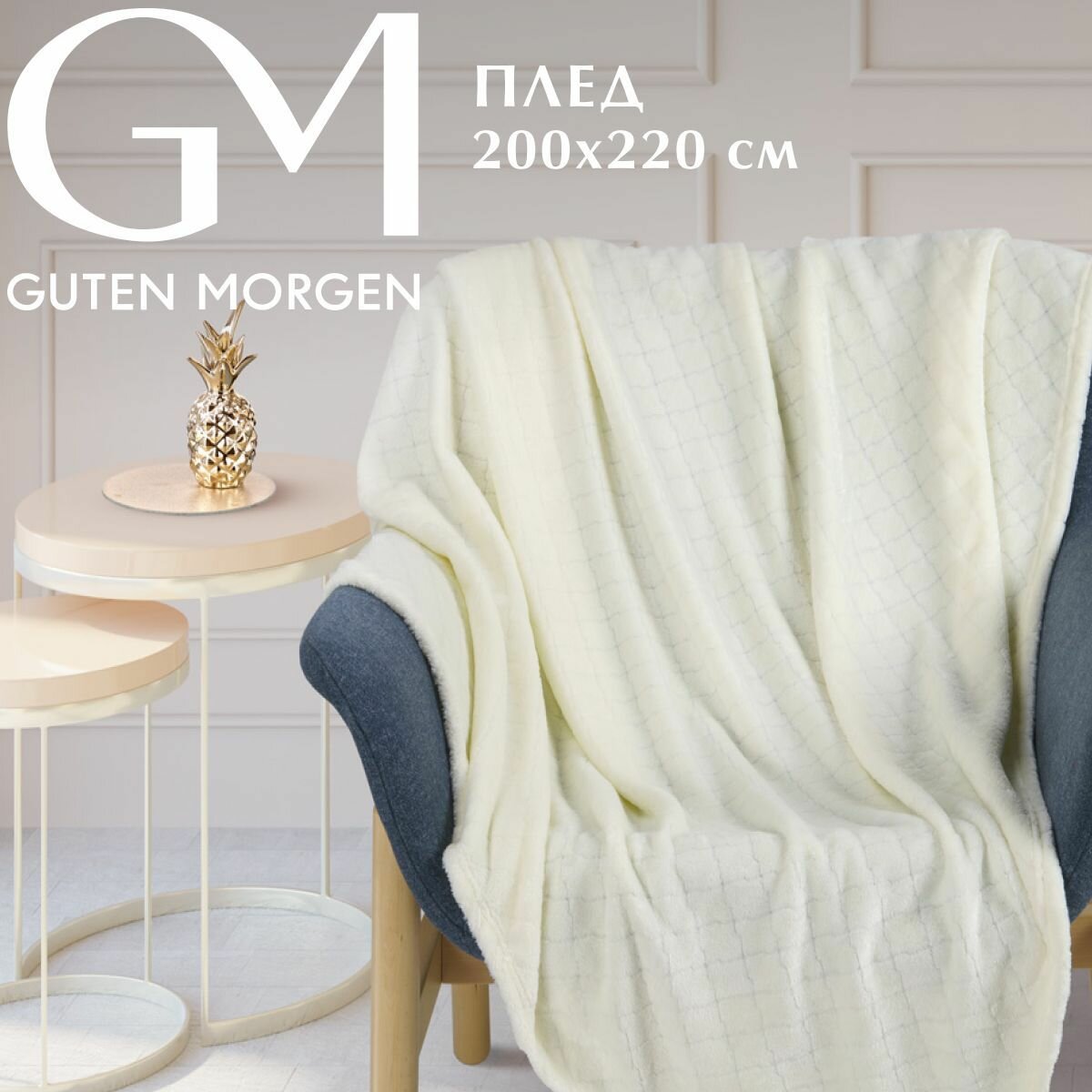 Покрывало (плед), Guten Morgen, Велсофт, Жаккардовый, Сливочный, 200x220 см 2 242 ₽