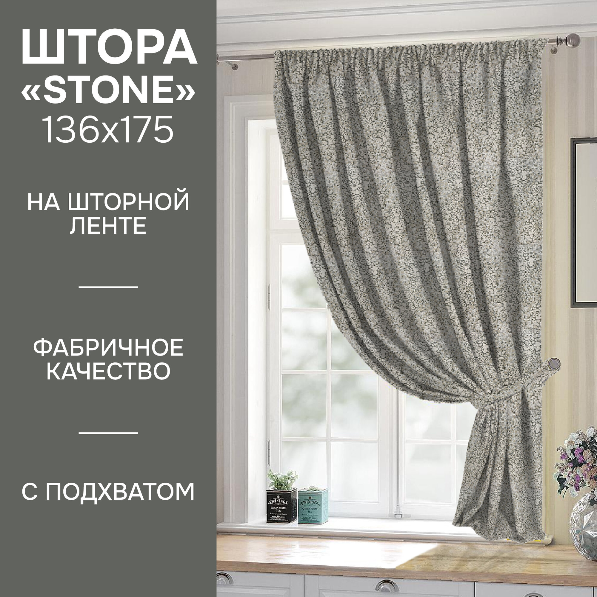 Штора на тесьме Stone - K 136х175 см, жаккард, цвет серый, Kauffort информация: