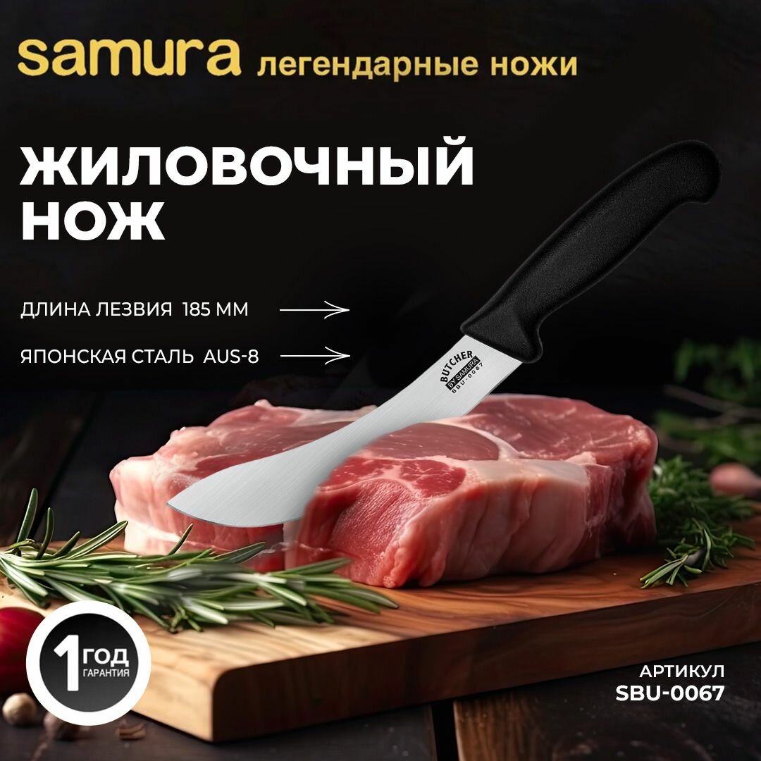 Нож кухонный жиловочный Samura Butcher SBU-0067, 17.3 см, черный информация: