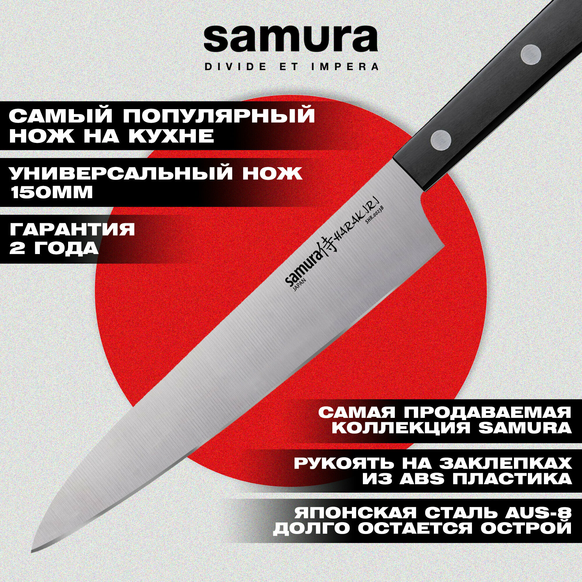Отзывы на Кухонный нож Samura "HARAKIRI" универсальный 150 мм, коррозионно-стойкая сталь, ABS пластик SHR-0023B/K