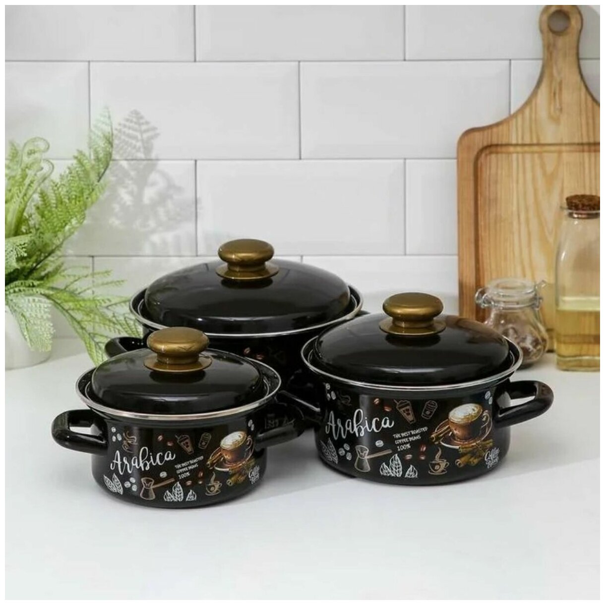 Керченская эмаль Набор кастрюль «Грациозный», 3 предмета: 1,5 л, 2 л, 3 л, стеклянные крышки, индукция, цвет коричневый