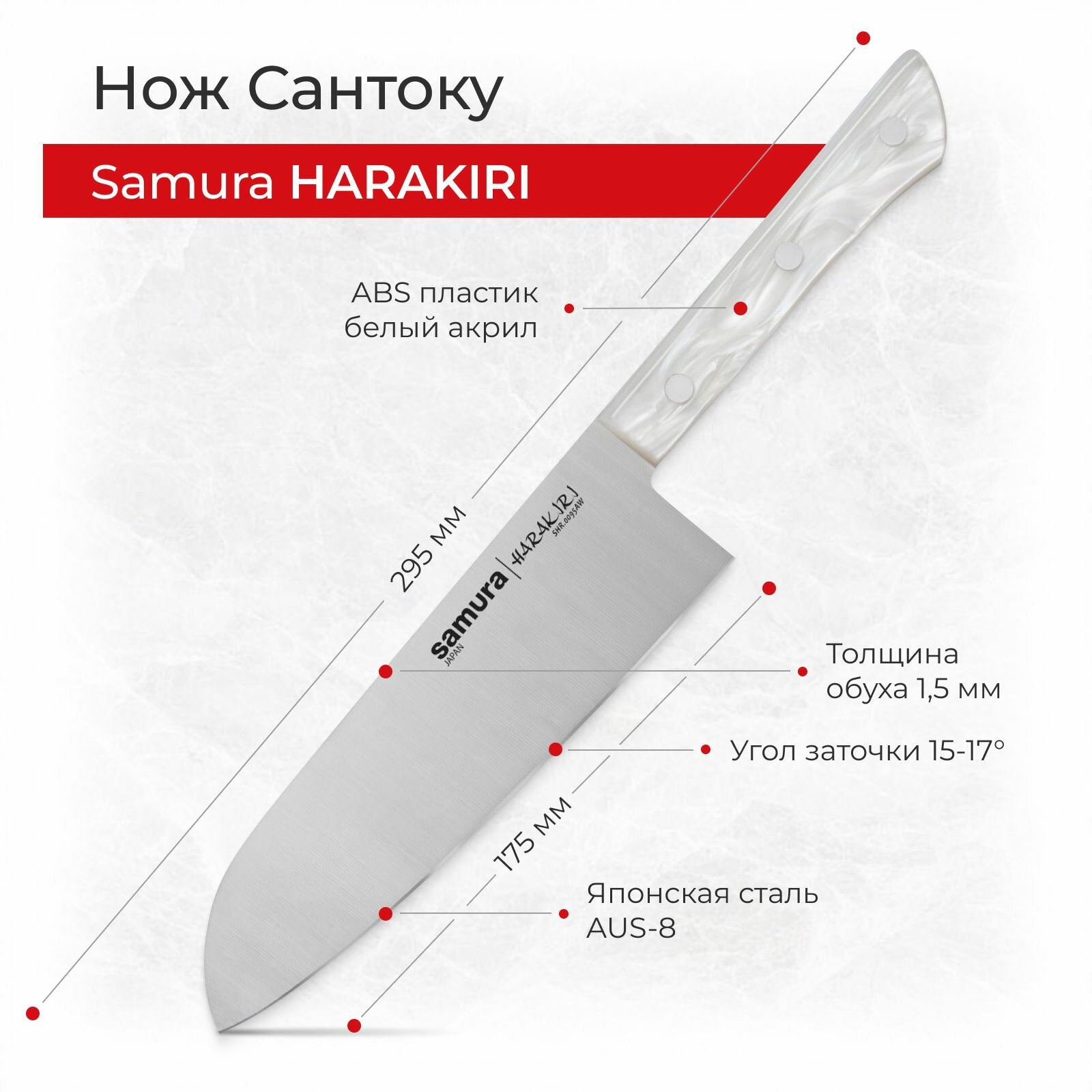 Нож кухонный поварской Samura Harakiri Сантоку универсальный профессиональный SHR-0095AW информация: