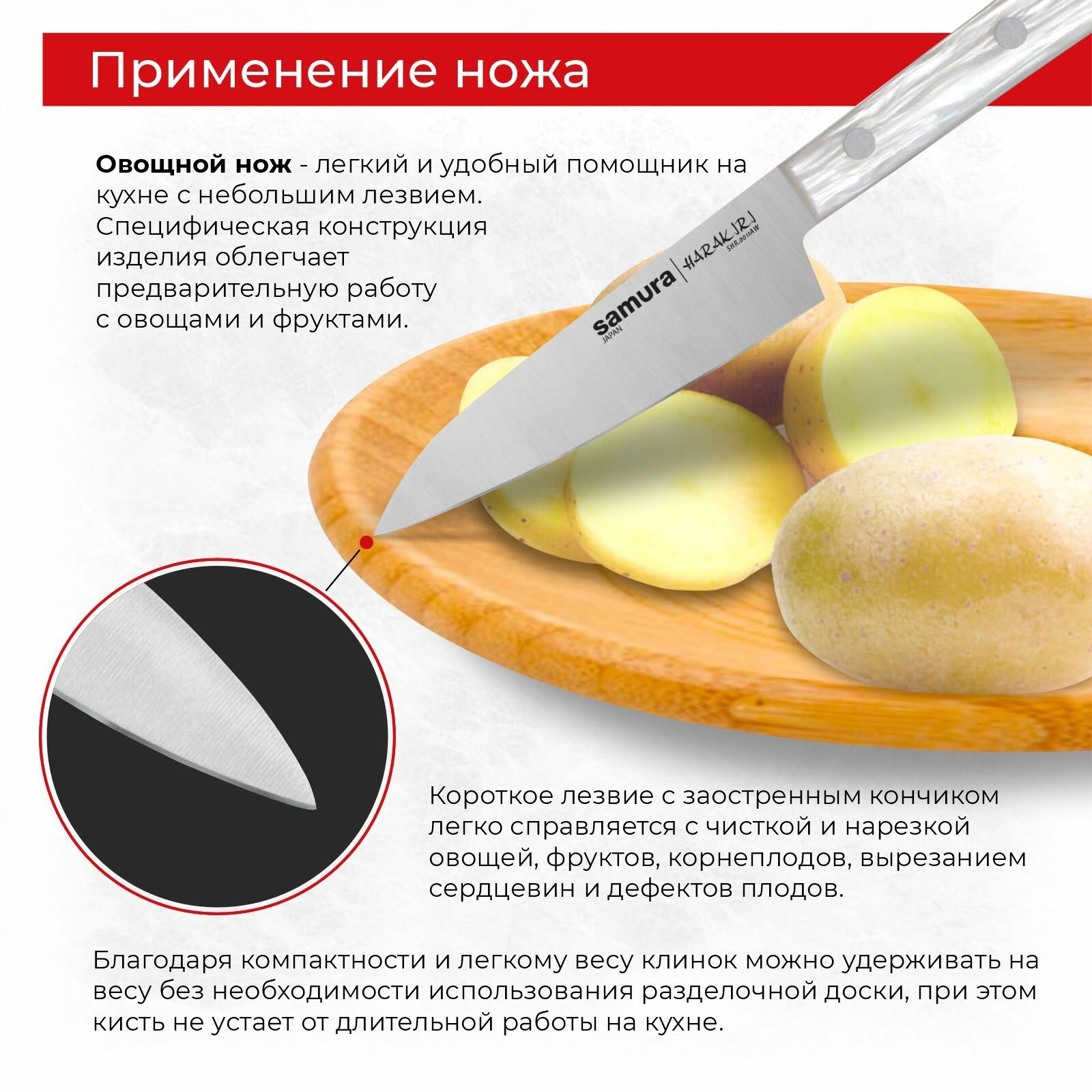 Нож кухонный поварской Samura Harakiri овощной для нарезки профессиональный SHR-0011AW информация: