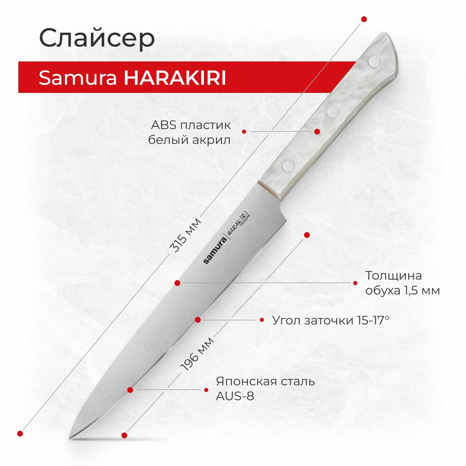 Отзывы на Нож кухонный поварской Samura Harakiri слайсер для нарезки профессиональный SHR-0045AW