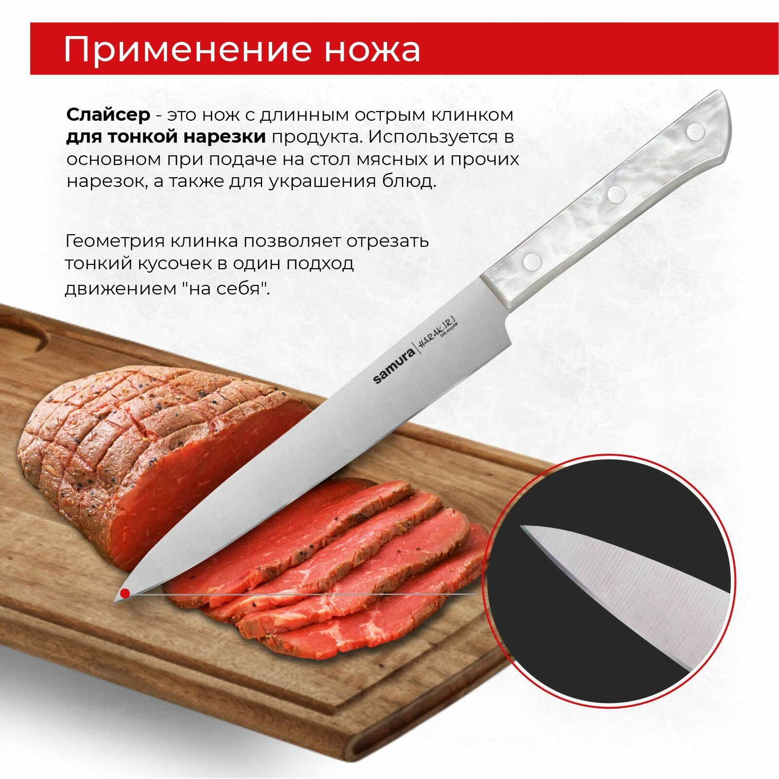 Нож кухонный поварской Samura Harakiri слайсер для нарезки профессиональный SHR-0045AW информация: