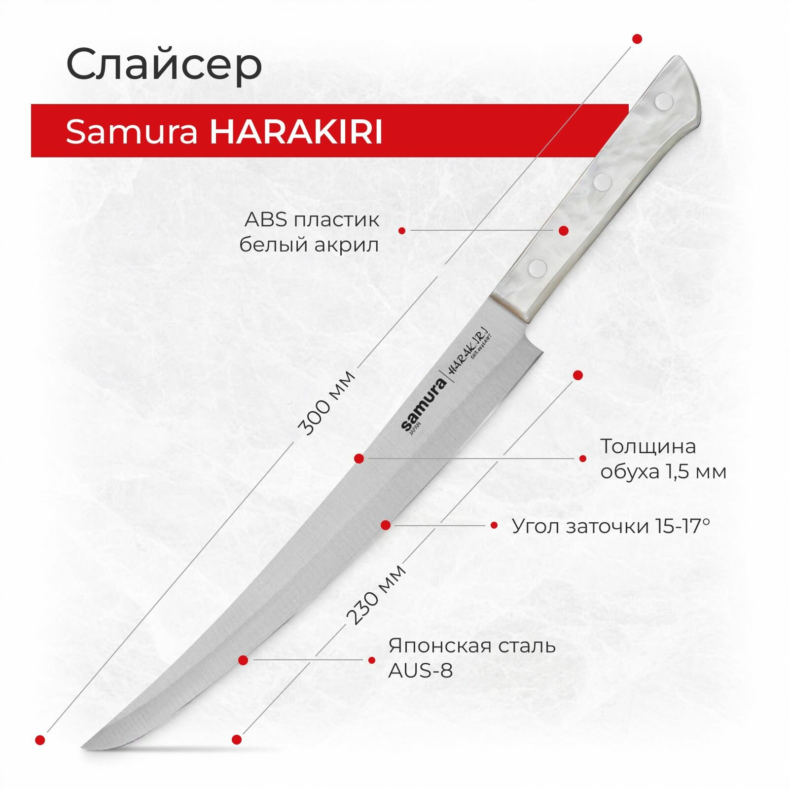 Нож кухонный поварской Samura Harakiri слайсер для нарезки профессиональный SHR-0045AW 1 840 ₽