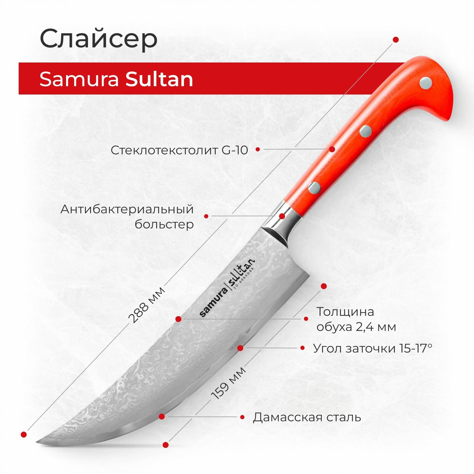 Отзывы на Нож кухонный поварской Samura Sultan Пчак слайсер для нарезки профессиональный SU-0086DBR