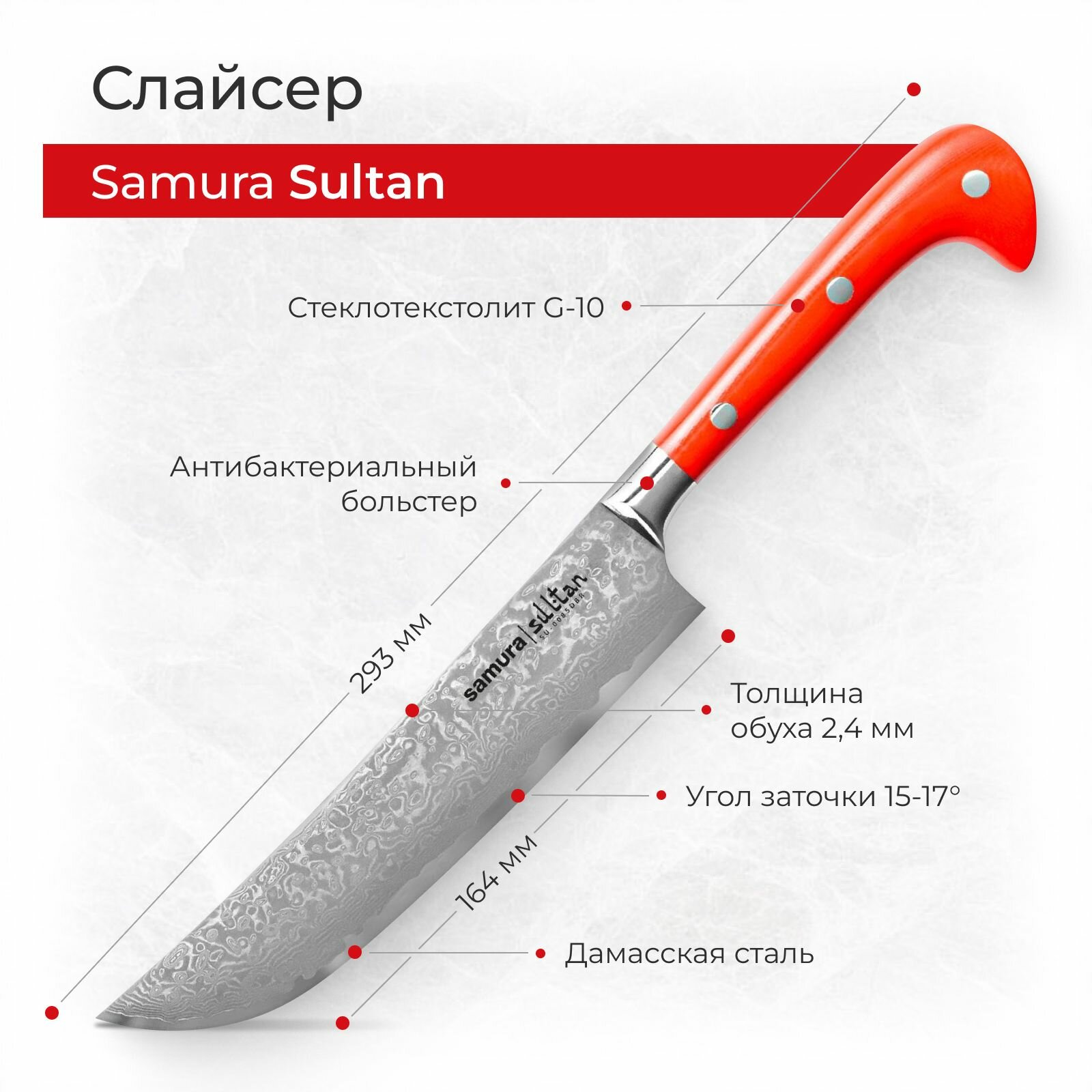 Нож кухонный поварской Samura Sultan Пчак слайсер для нарезки профессиональный SU-0086DBW 16 023 ₽