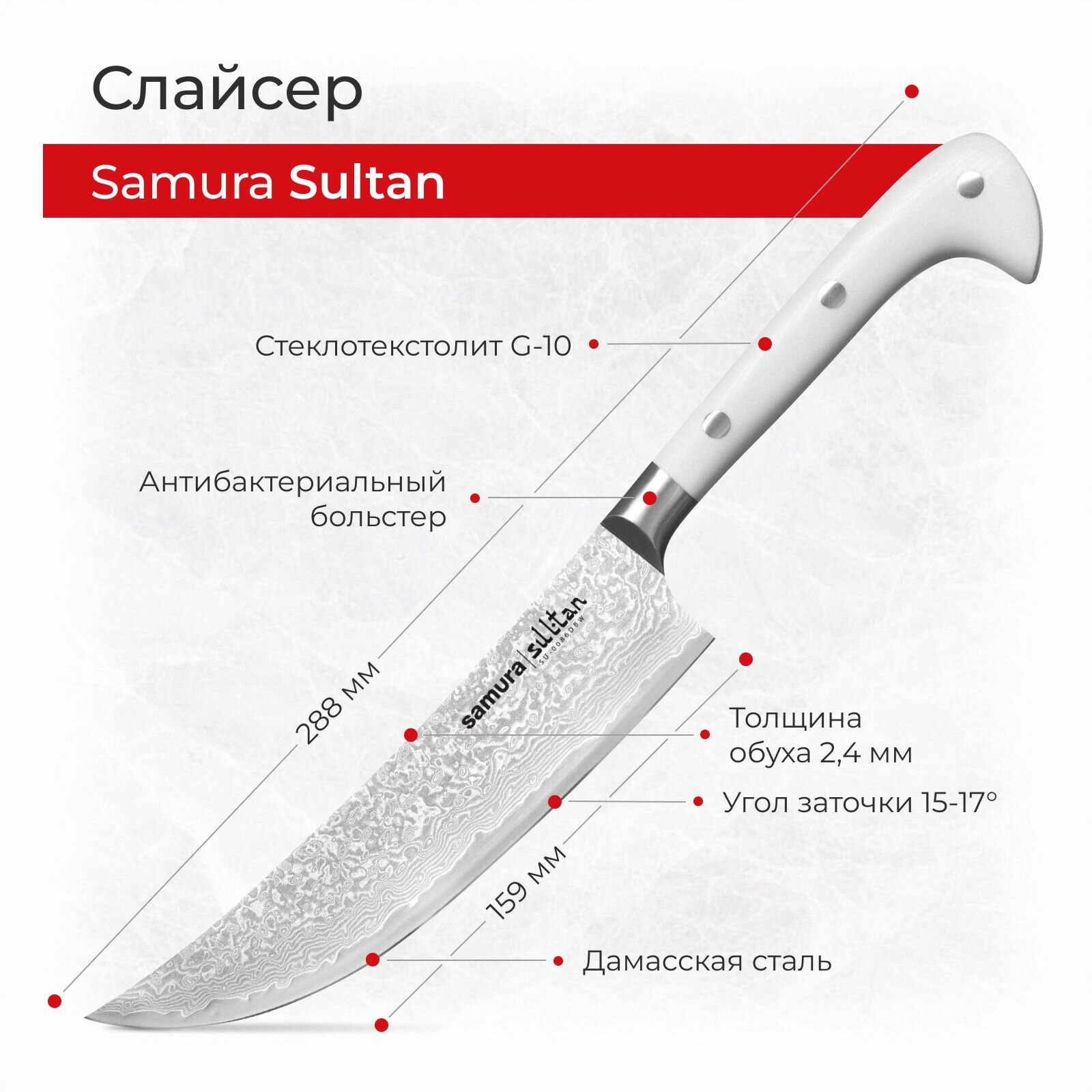 Нож кухонный поварской Samura Sultan Пчак слайсер для нарезки профессиональный SU-0086DBW информация: