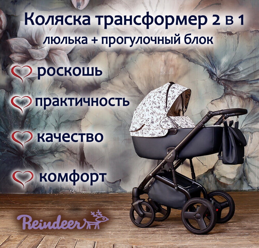 Отзывы на Коляска детская. универсальная Reindeer Raven цвет черный+белый RV9, 2 в 1 люлька+прогулочный блок, всесезон