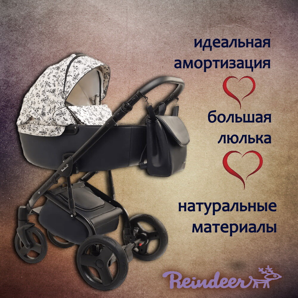 Коляска детская. универсальная Reindeer Raven цвет черный+белый RV9, 2 в 1 люлька+прогулочный блок, всесезон информация: