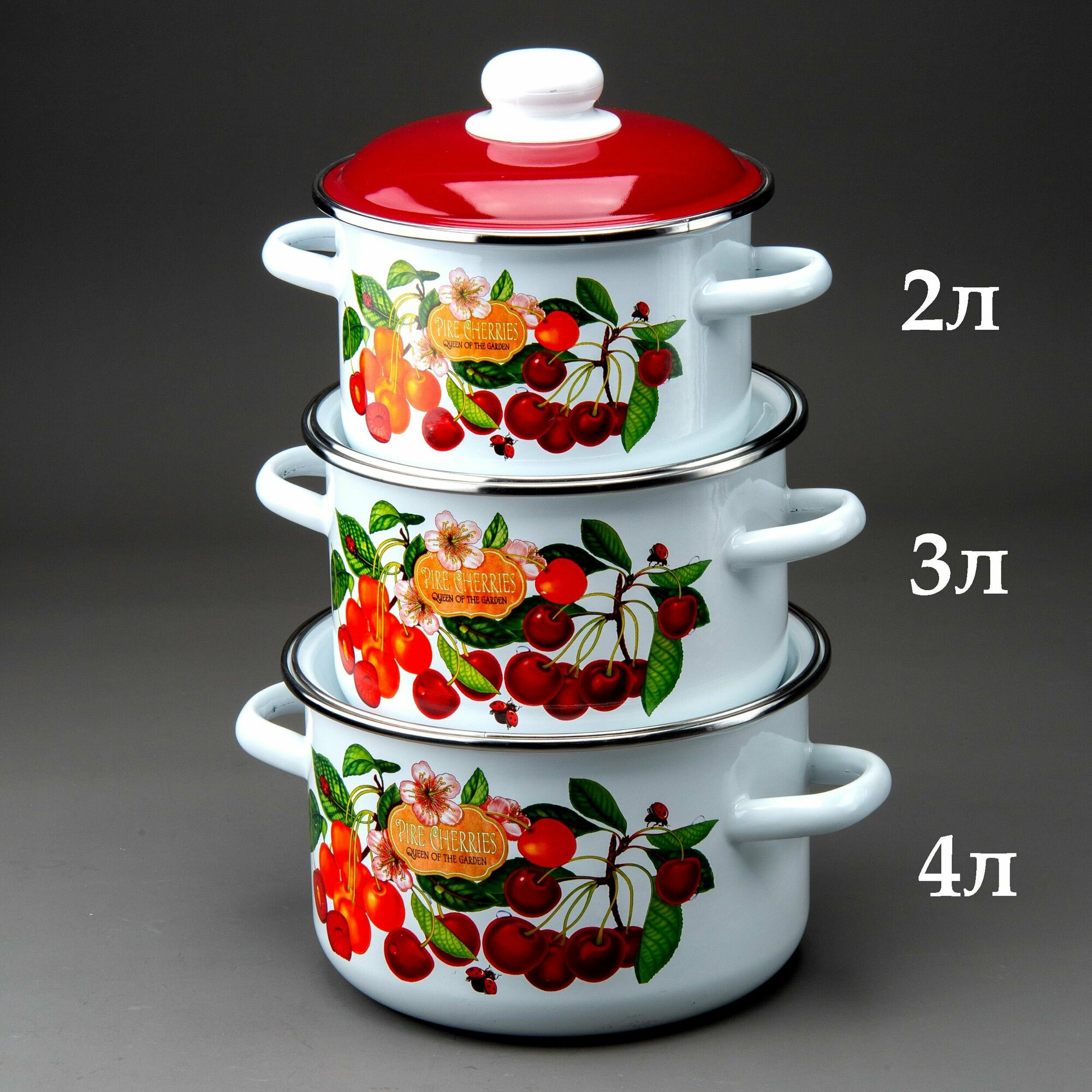Набор эмалированных кастрюль Черешня 2.0/3.0/4.0л информация: