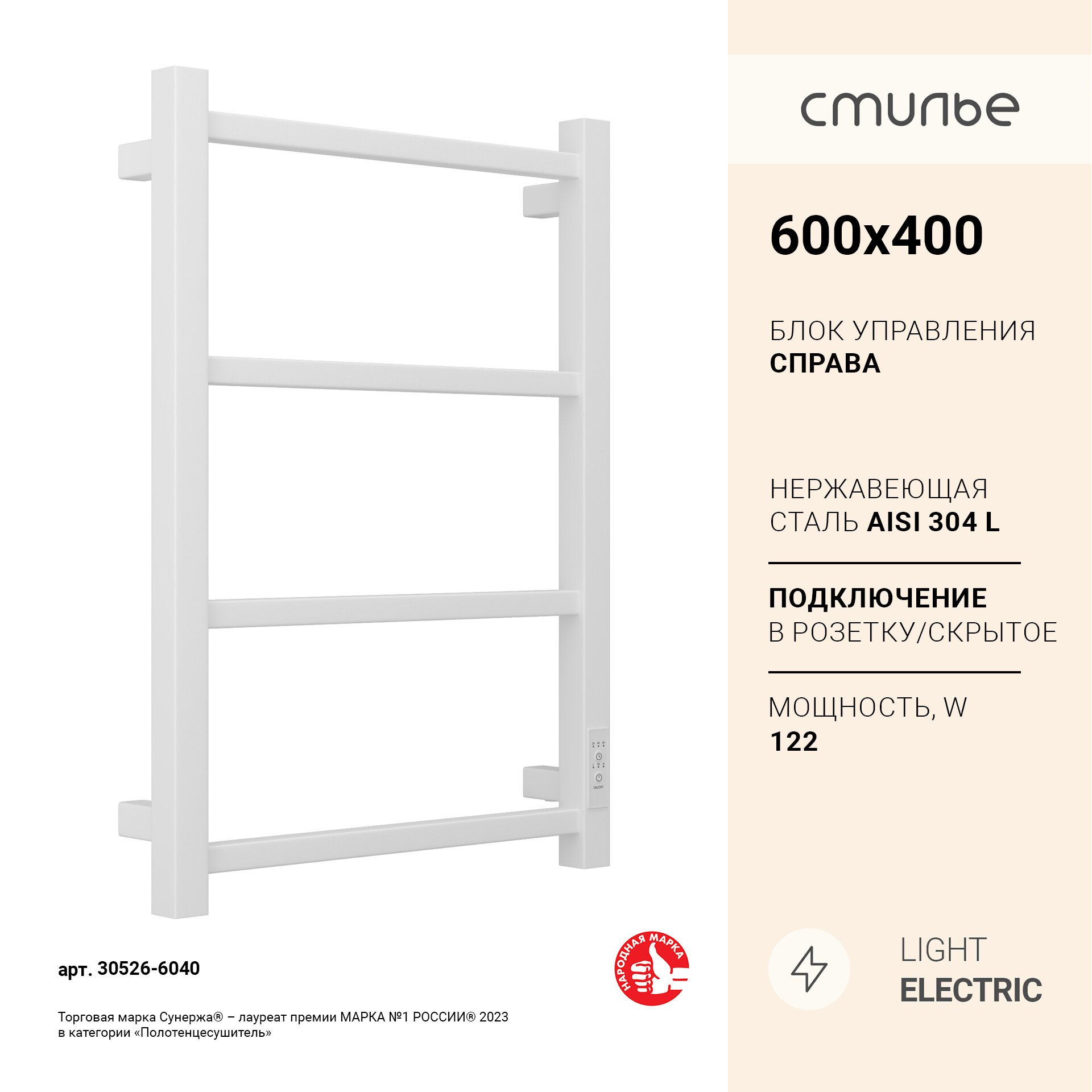 Полотенцесушитель электрический Стилье Формат 26 600х400 правый Матовый белый информация: