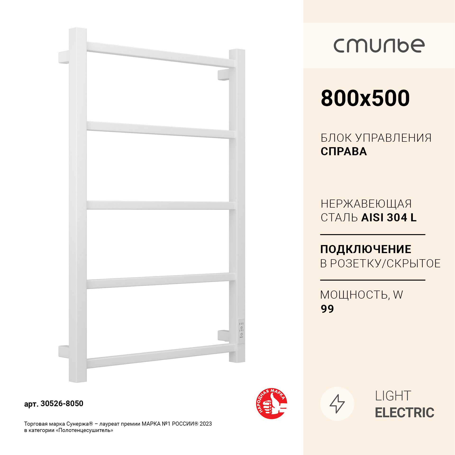 Полотенцесушитель электрический Стилье Формат 26 800х500 правый Матовый белый 30526-8050 информация: