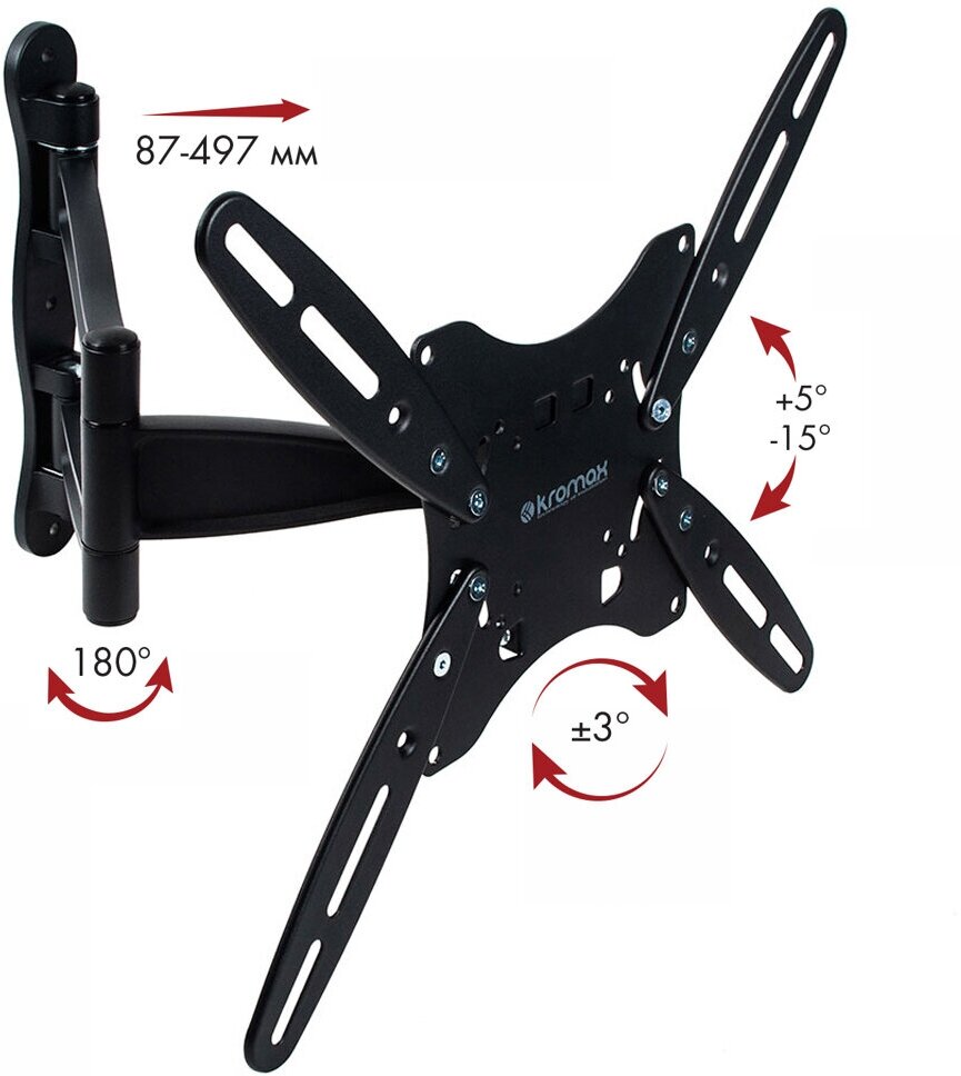 Кронштейн для телевизора настенный наклонно-поворотный KROMAX CORBEL-3 / до 34 дюймов / vesa 100x100