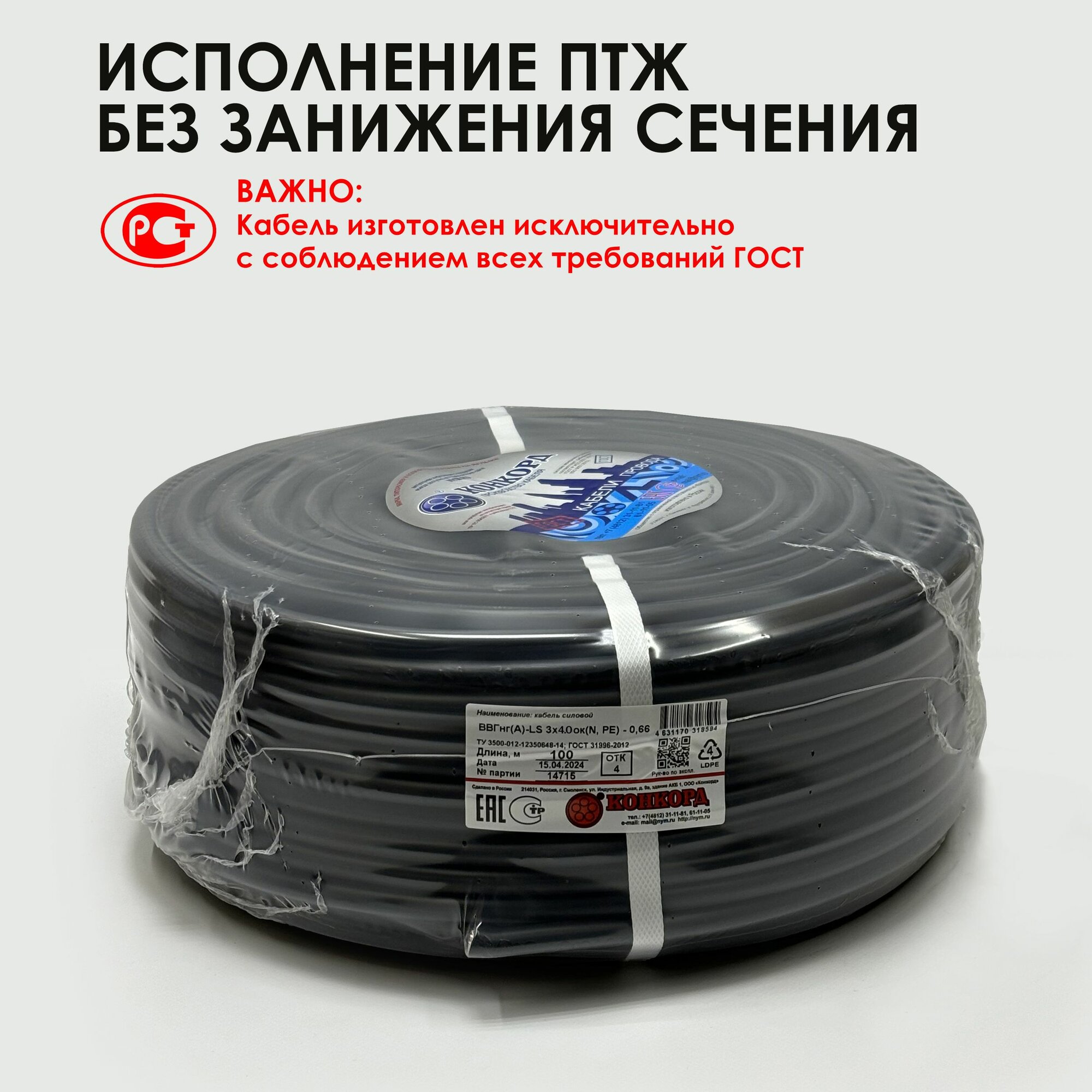 Силовой кабель ВВГнг (А) LS 3х2,5 ГОСТ, конкорд, (круглый, черный), 100 метров