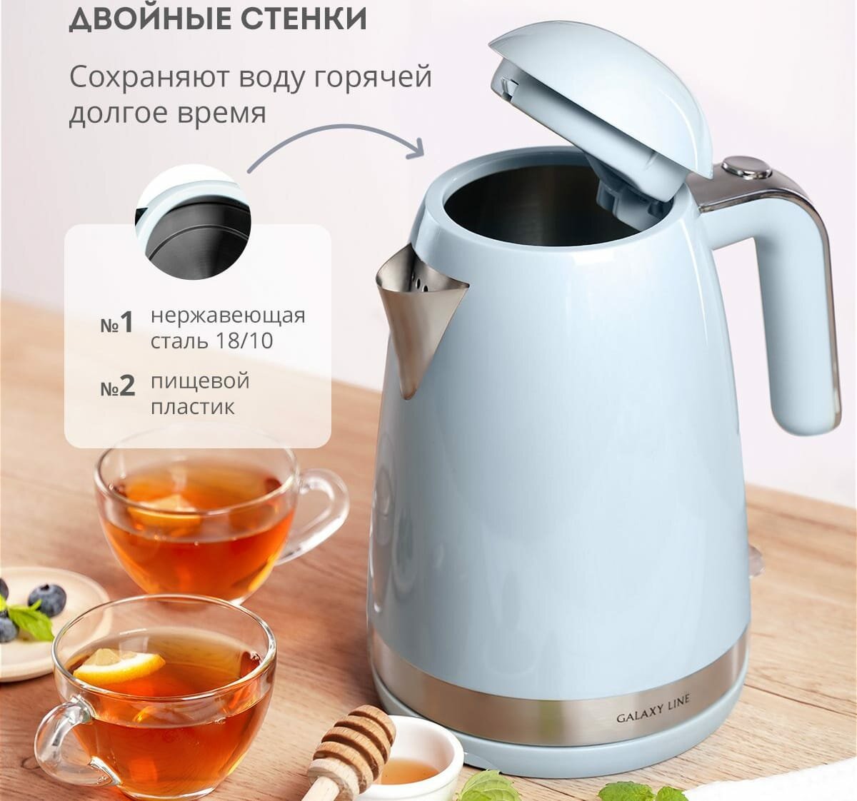 Чайник электрический Galaxy Line GL0339, 1,7 литра, 2200 Ватт 2 550 ₽