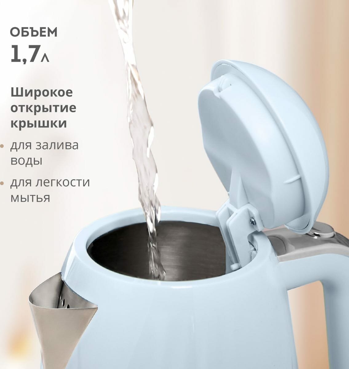 Чайник электрический GALAXY GL 0332 2200 Вт голубой 1.7 л металл/пластик информация: