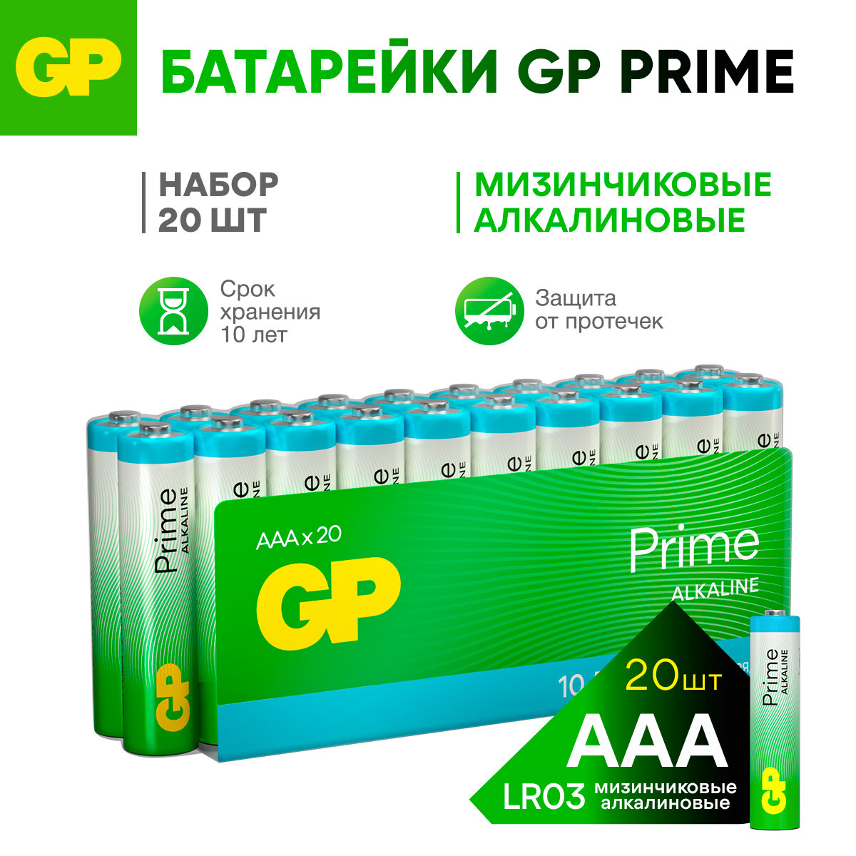 GP Батарейки ААА мизинчиковые алкалиновые Prime Alkaline, набор 20 шт 1 103 ₽