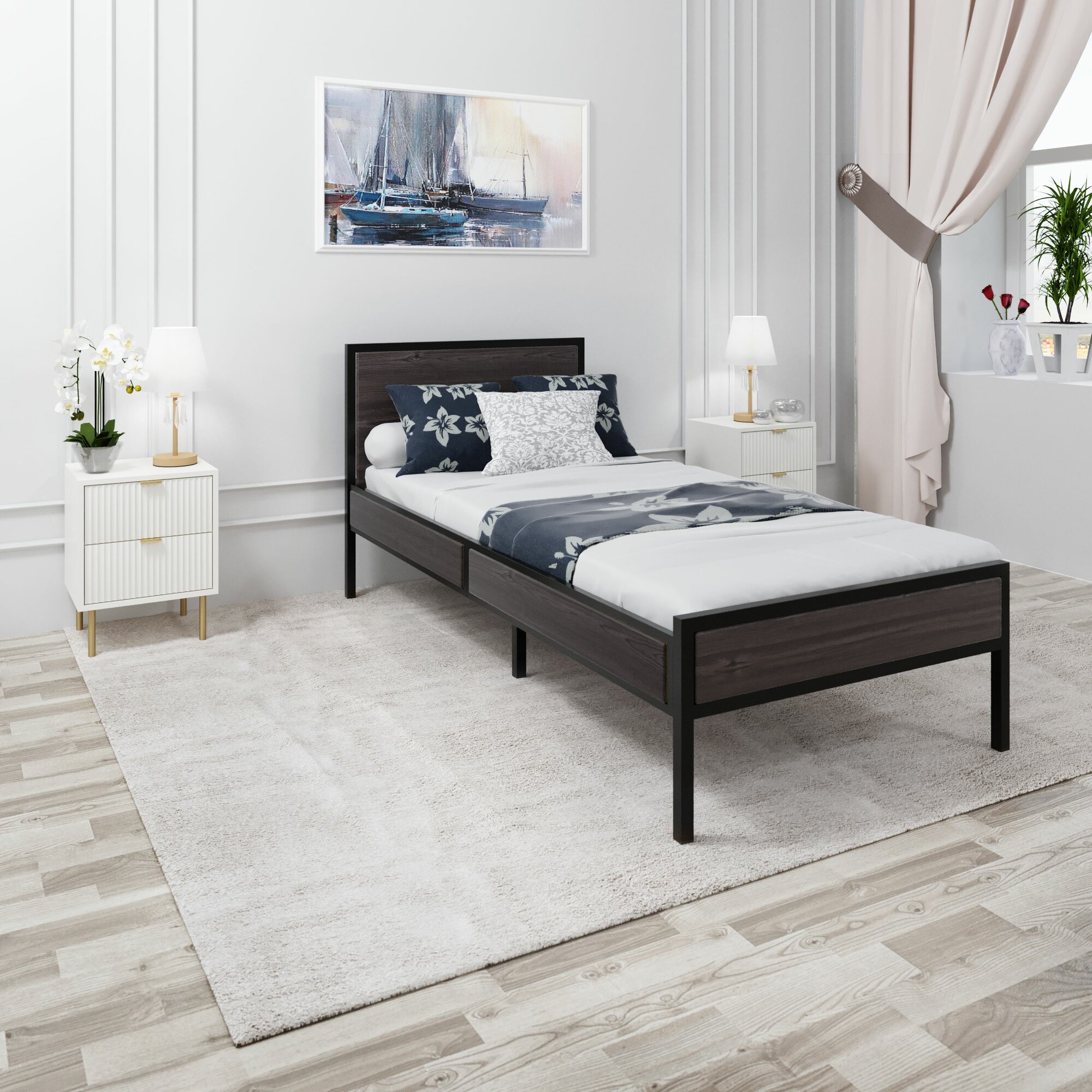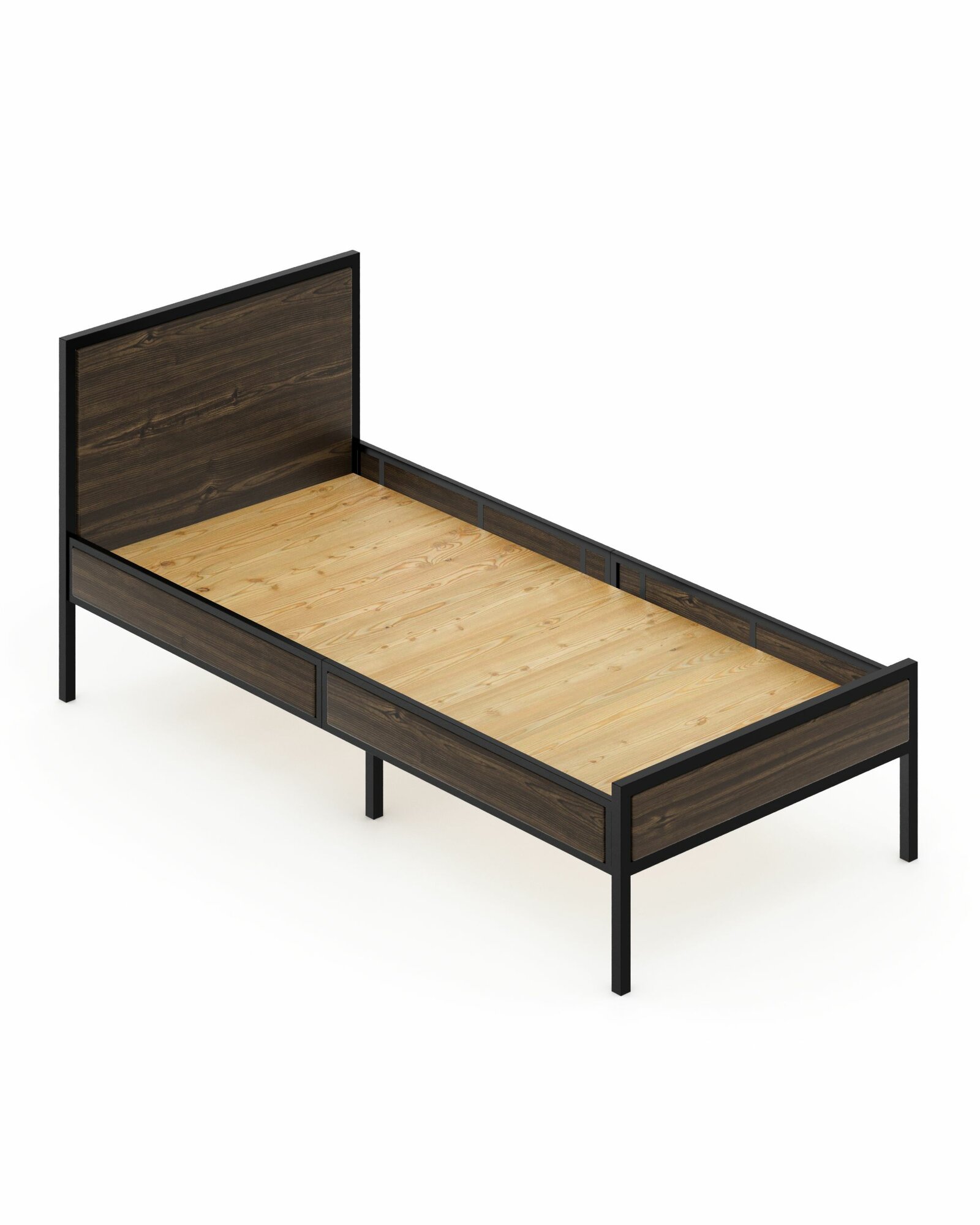 Отзывы на Кровать односпальная Лофт со сплошным основанием, цвет венге с черным металлическим каркасом, 90х200 см