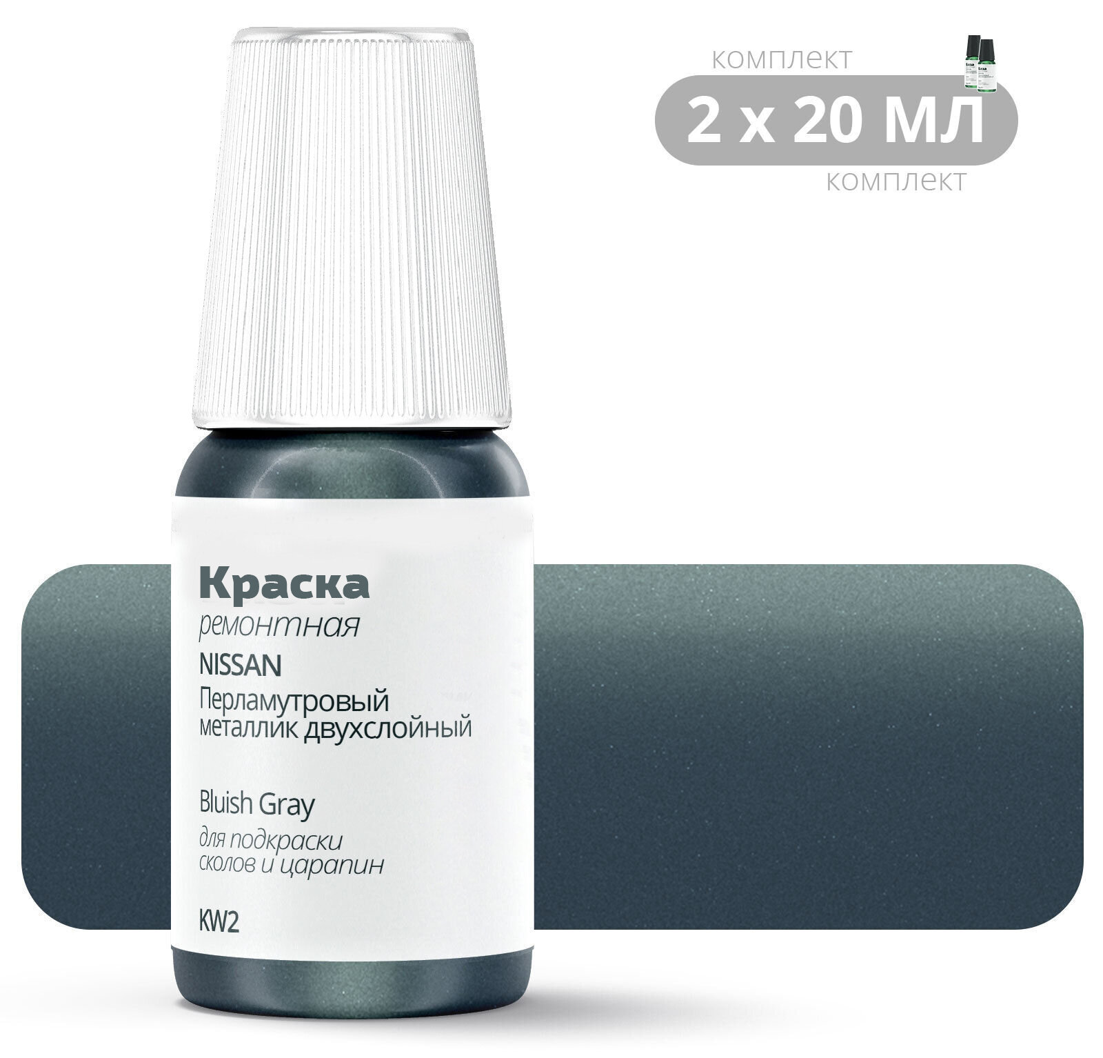 10 цен на Подкраска NISSAN "Bluish Gray", код цвета: KW2, штрих-корректор от сколов и царапин. Комплект 2х20мл. Серый перламутровый металлик двухслойный. Выпуск 2000 - 2000.