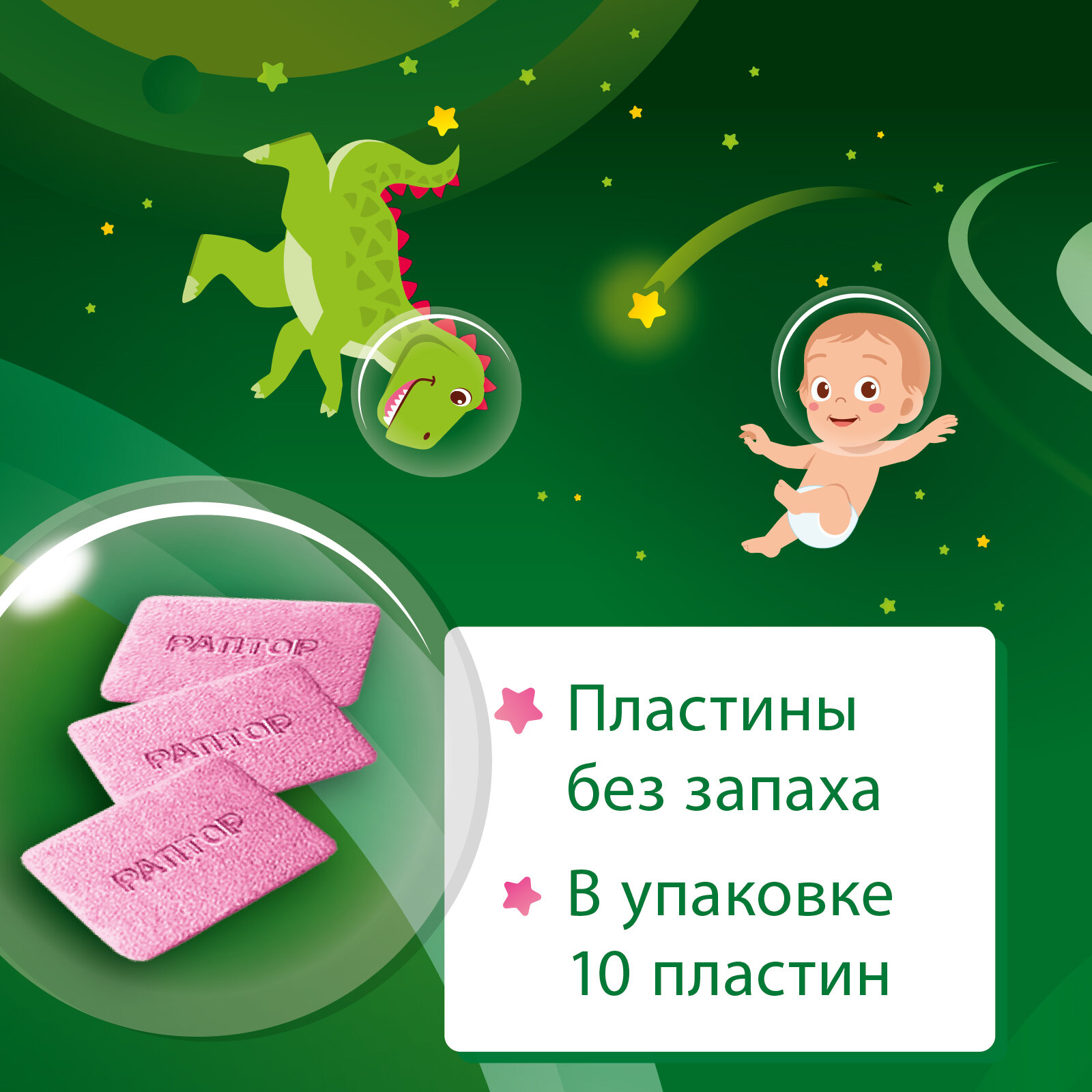 Пластина для фумигатора Раптор Некусайка для детей, 100 г, 10 шт., зеленый