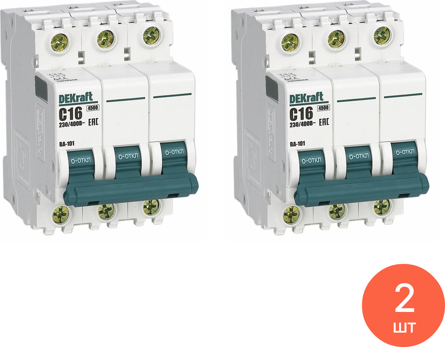 Автоматический выключатель 2шт DEKraft ВА-101 3P 16А характеристика C 4.5кА трехполюсный 11078DEK