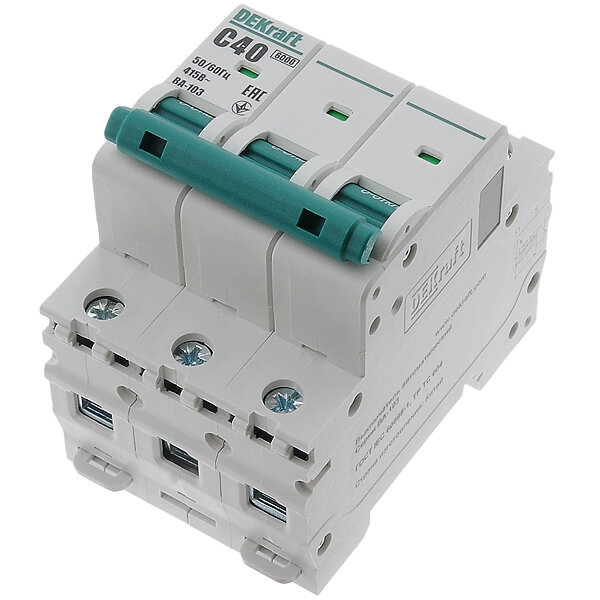Автоматический выключатель DEKraft ВА-103, 50 ампер, три полюса, характеристика C, 6 кА