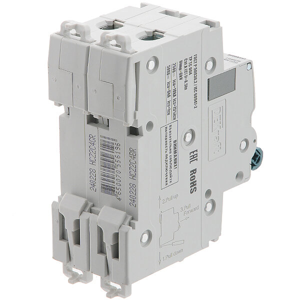 Автоматический выключатель двухполюсный DEKraft ВА-105 DC 6A, 10кА, 500 В, характеристика C