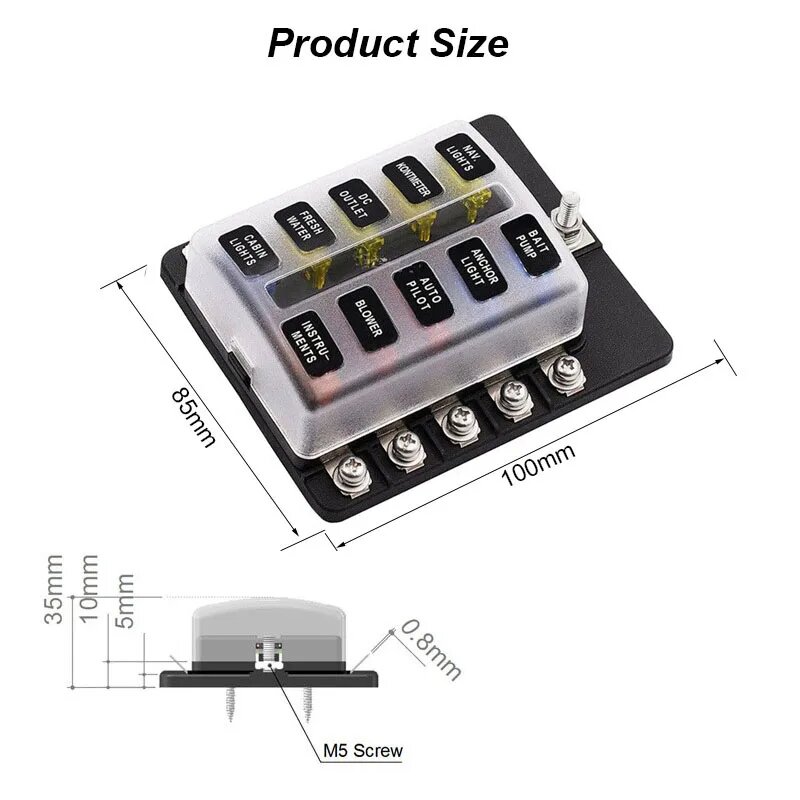 Отзывы на Универсальный автомобильный блок предохранителей 6/8/10 Way Blade, 10 Way Box 2, Стандарт, 100A