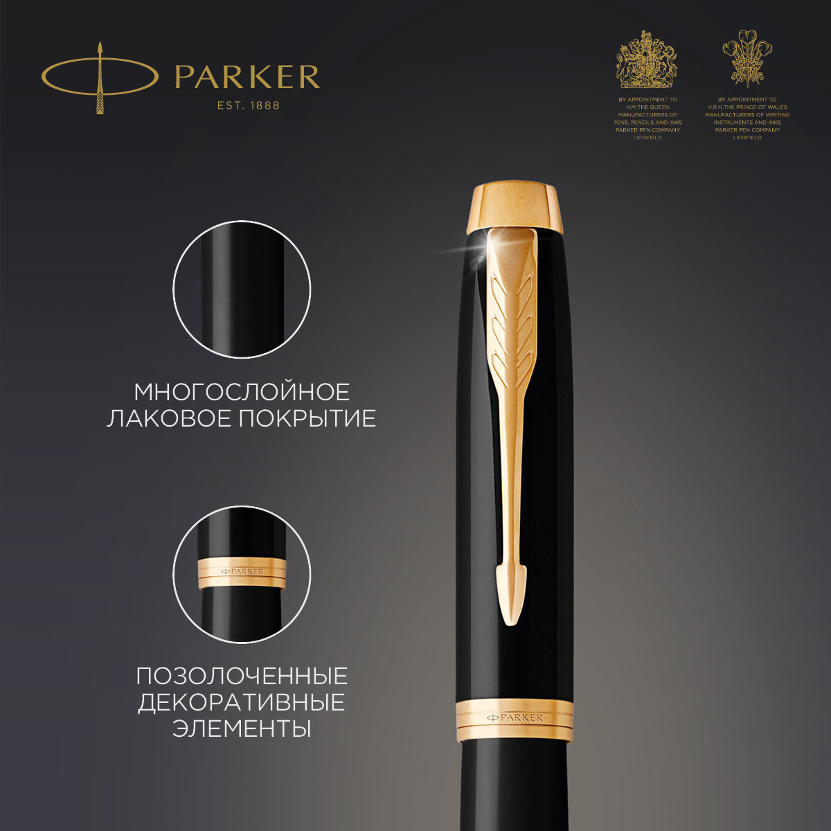 Ручка перьевая Parker "IM Core Black Lacquer GT", корпус черный глянцевый лак, позолоченные детали, синяя (1931645)