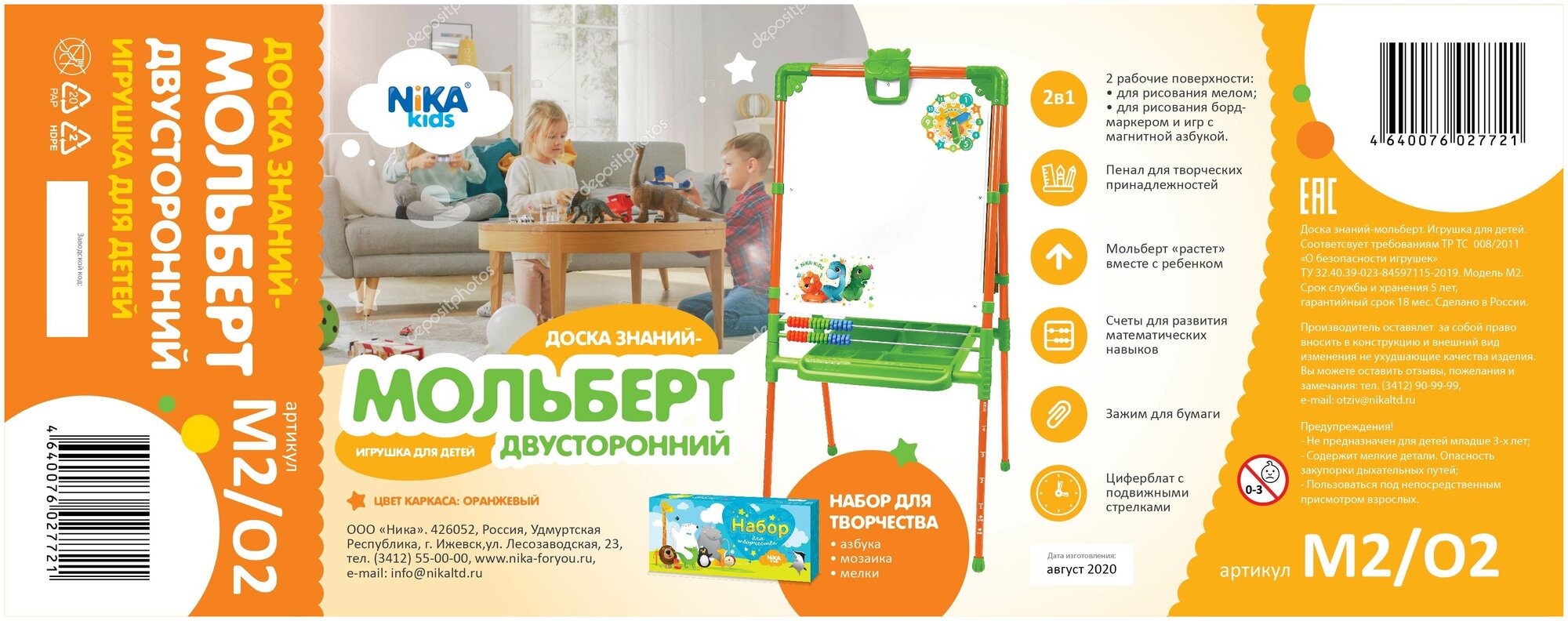 Мольберт детский / Доска для рисования Nika М2/О2 (Orange) информация: