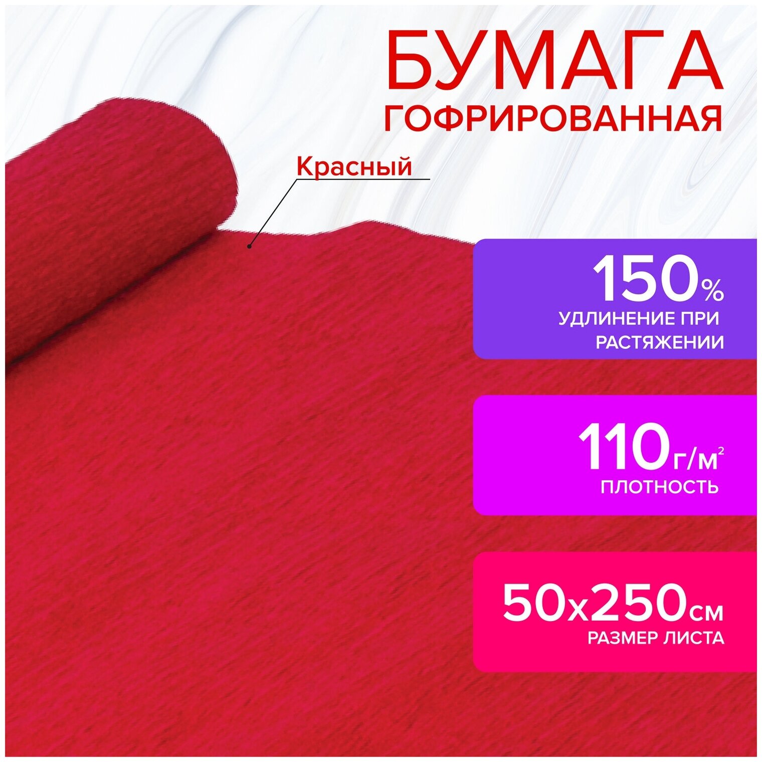 Бумага гофрированная цветная / крепированная / креповая упаковочная для подарков и цветов Для Флористики, 110 г/м2, Красная, 50х250 см, Остров Сокровищ