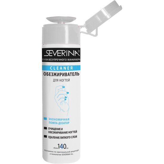Средство для обезжиривания ногтей и снятия липкого слоя SEVERINA Cleaner с помпой, 140 мл информация: