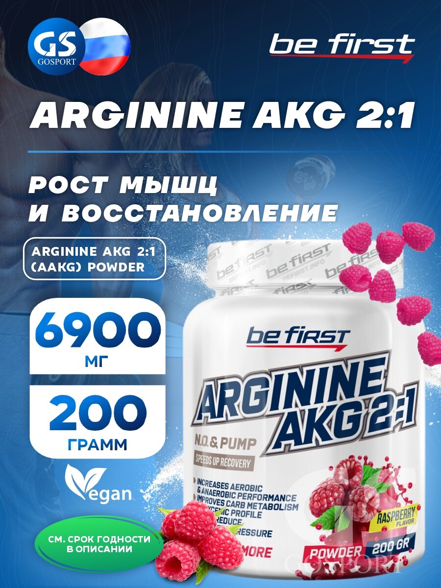 Аргинин альфа-кетоглутарат (аакг) порошок Be First Arginine AAKG 2:1 Powder, 200 г - Спортивная добавка для усиленного питания мышц, повышающая работоспособность и скорость восстановления