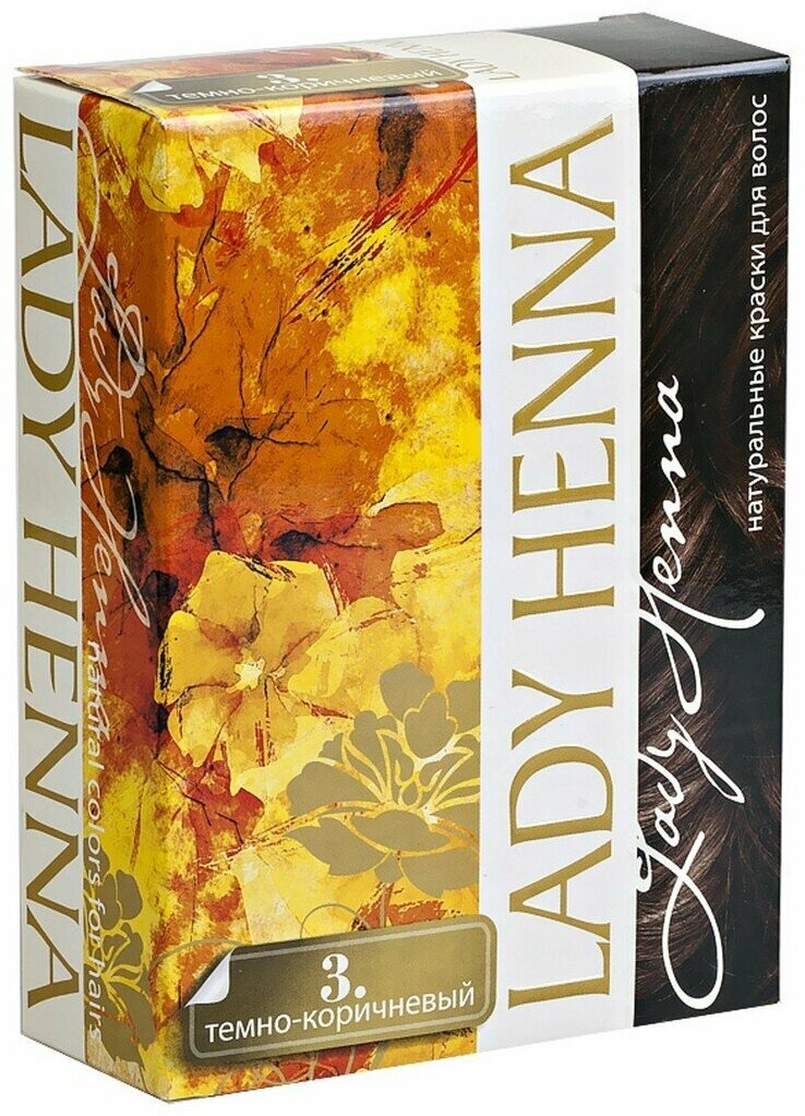 Краска для волос на основе хны тёмно-коричневый 3., Lady Henna, 60 г.