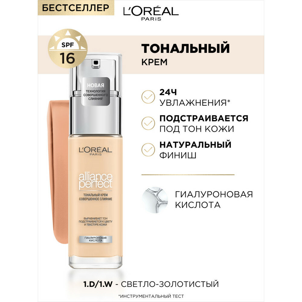 L'Oreal Paris, Тональный крем ALLIANCE PERFECT совершенное слияние обогащенный гиалуроновой кислотой, тон 1.D / 1.W, SPF 16, 30 мл 1 106 ₽
