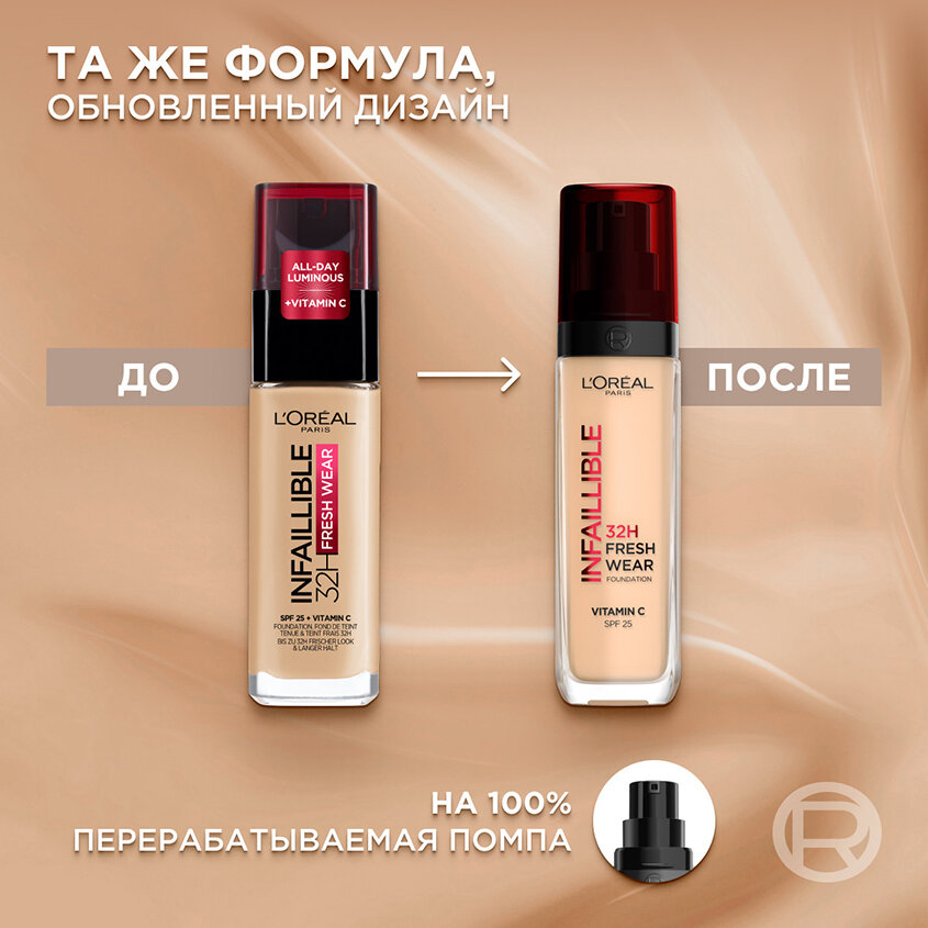 L'Oreal Paris, Стойкий тональный крем INFAILLIBLE свежий ТОН с UV-защитой, оттенок 100, SPF 25, 30 мл 1 200 ₽