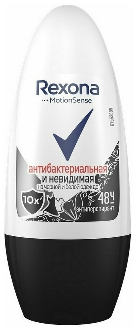 Rexona Антиперспирант део-ролик женский Антибактериальная и Невидимая на черном и белом, 50 мл 1 шт 201 ₽