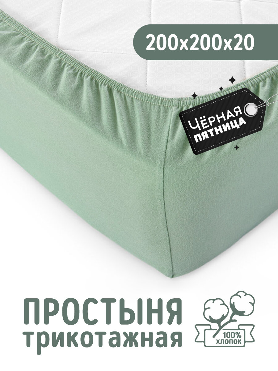 Трикотажная простынь на резинке 200х200 Оливковый, 100% хлопок информация: