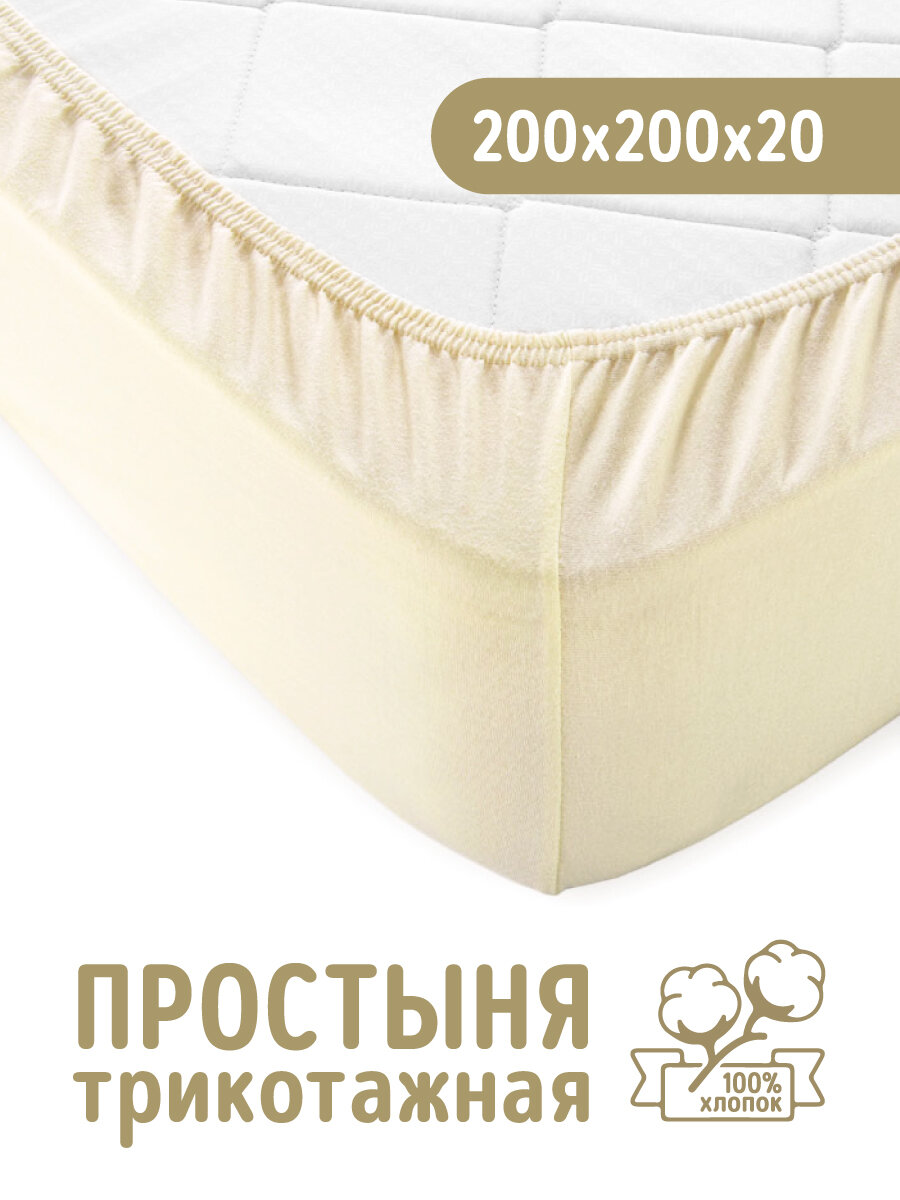 10 цен на Трикотажная простынь на резинке 200х200 Молочная, 100% хлопок