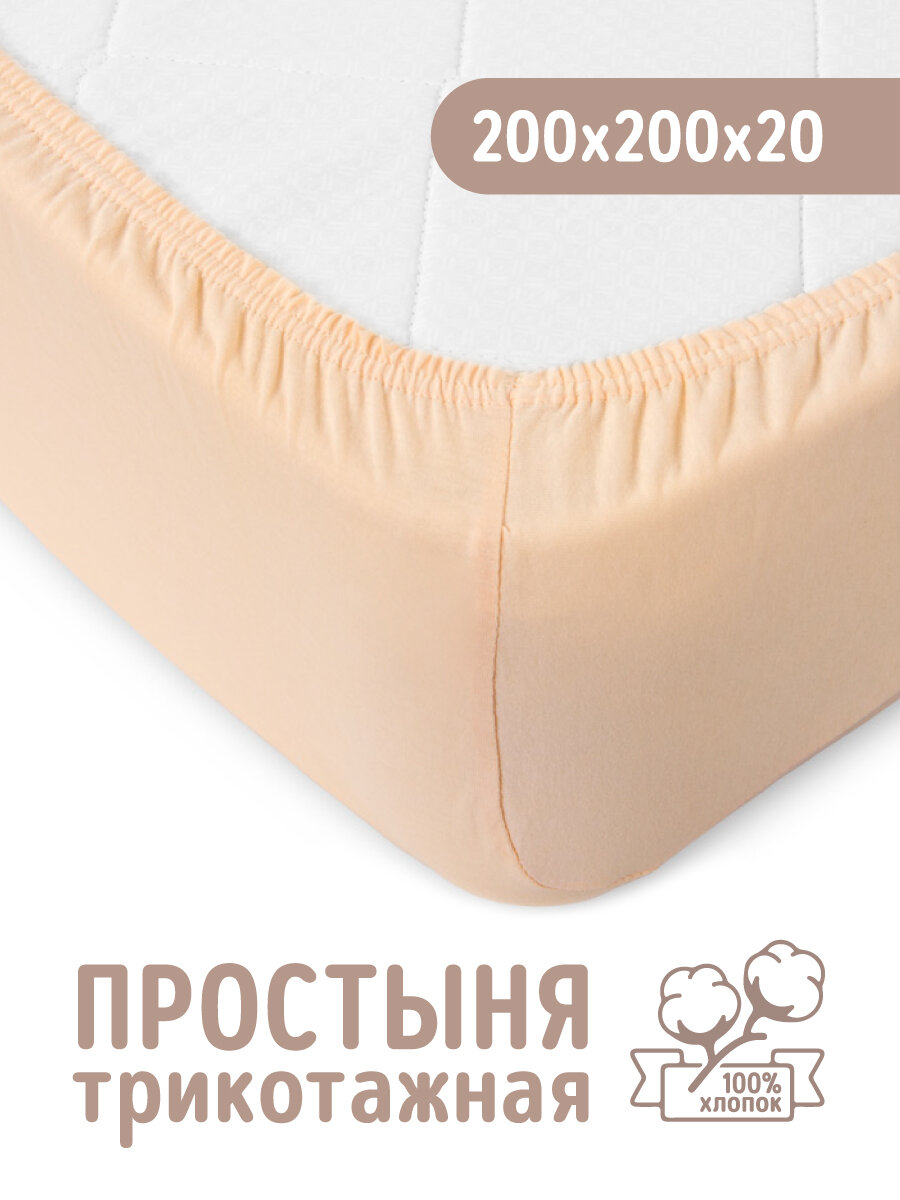 10 цен на Трикотажная простынь на резинке 200х200 Кремовая, 100% хлопок