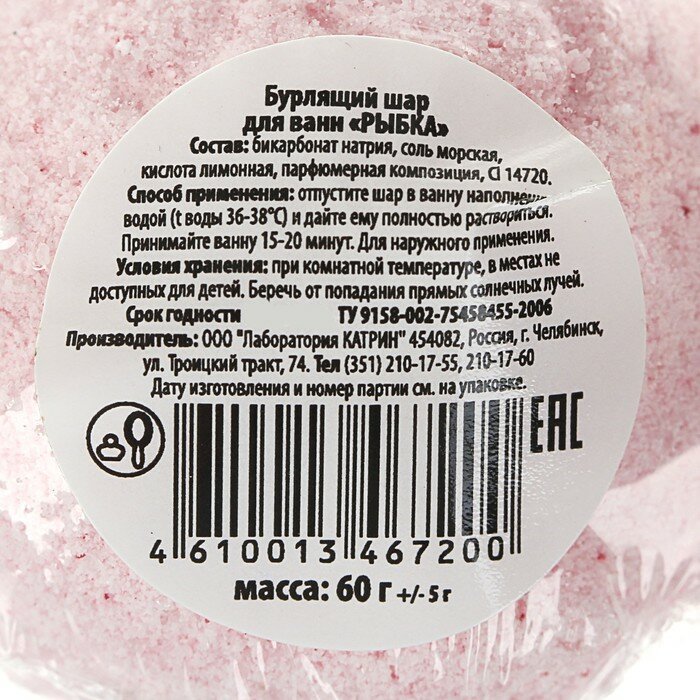 Laboratory Katrin Бомбочка для ванн «Рыбка», 60 г информация: