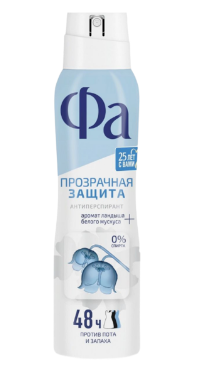 Аэрозоль дезодорант-антиперспирант Fa Прозрачная защита 48 ч, 150 мл
