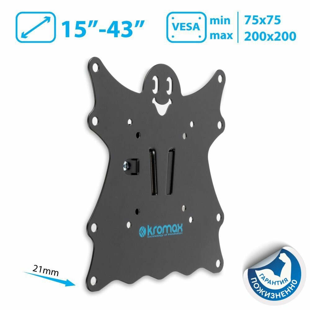 Кронштейн Kromax CASPER-200, для ТВ, фиксированный, 15-43", до 30 кг, 21 мм от стены, черный
